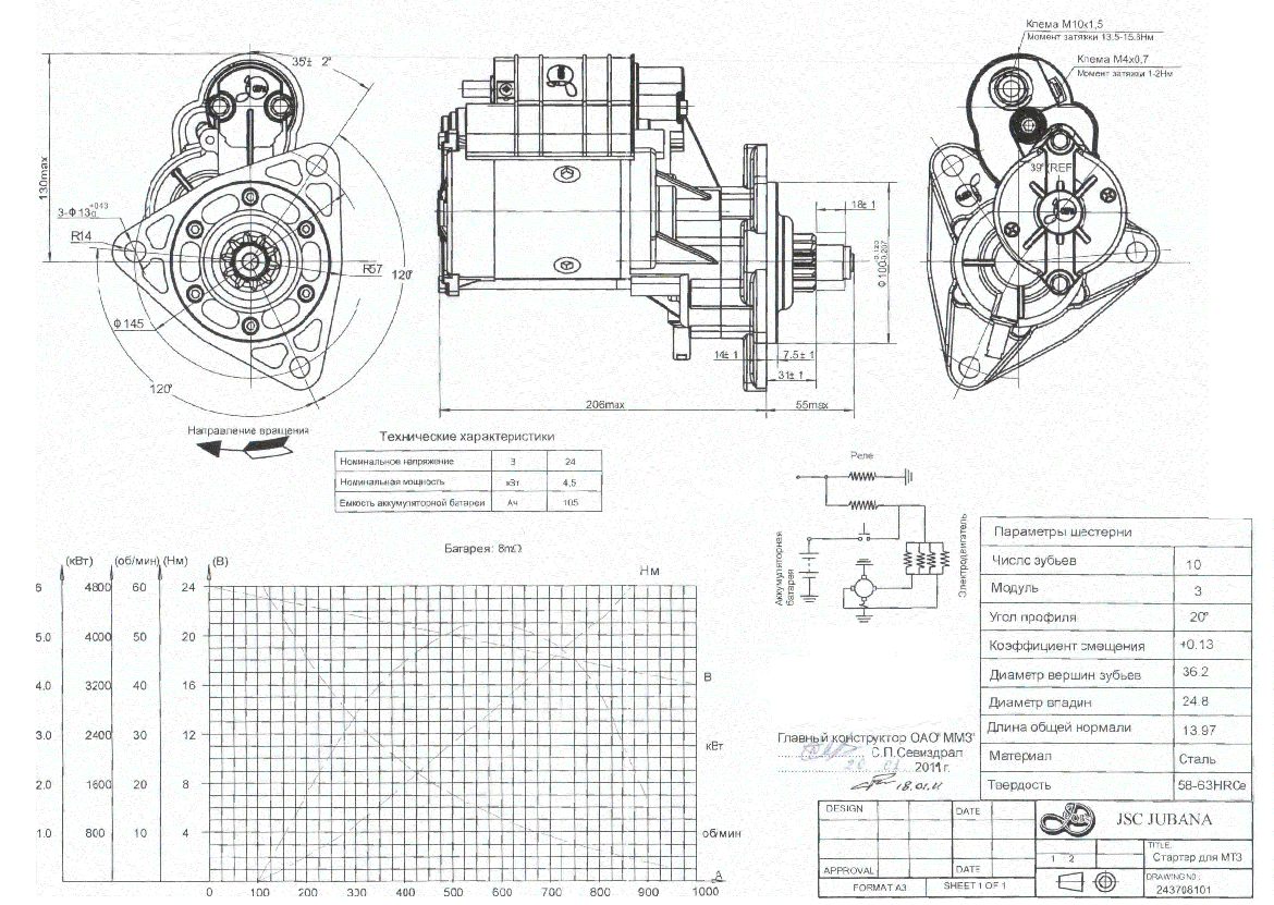 Конструкция и технические параметры Редукторного стартера JUBANA согласованы с главным конструктором Минского моторного завода.